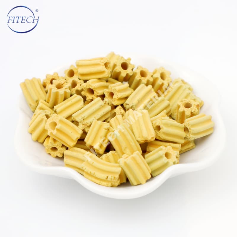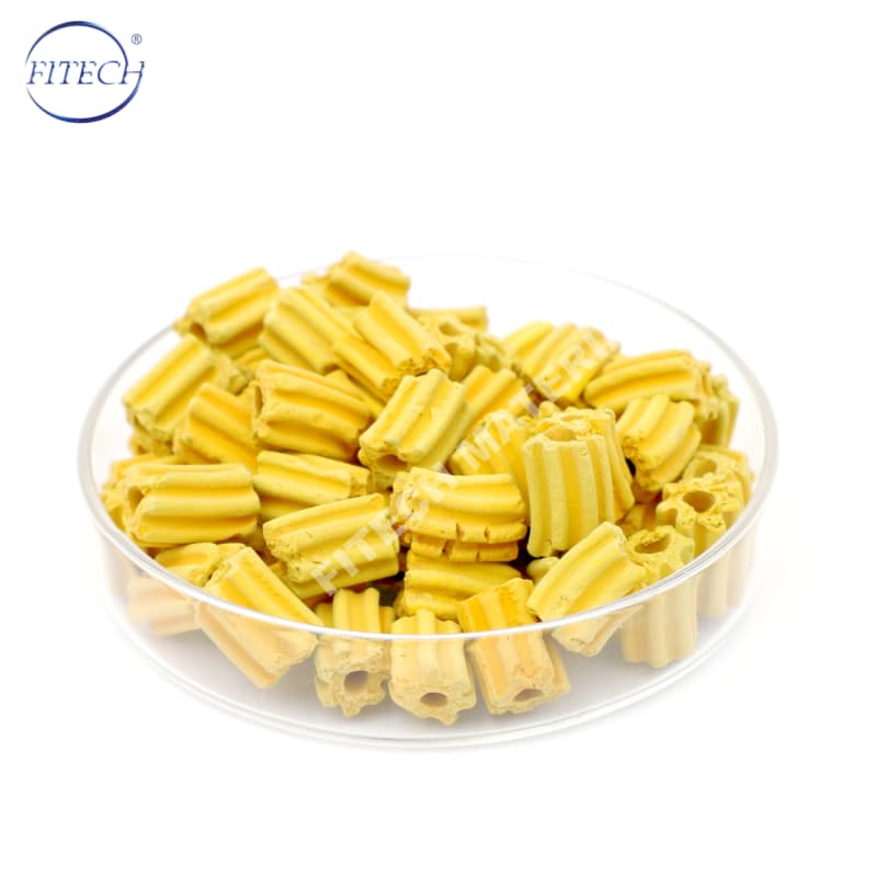 Sulfuric Acid Catalysis Used Vanadium Catalysts are used in the sulfuric acid industry to efficiently oxidize sulfur dioxide (SO₂) to sulfur trioxide (SO₃), FIT222M is a caesium catalyst, which contains much higher caesium than that of FIT218M, and it shows unmatched high activity throughout the entire operating temperature. When FIT222M installed on the top layer of the first bed, it can make the continuous operation temperature down to 370 ℃ and still maintains high SO2 conversion. When FIT222M installed in Bed 4 or Bed 5, it can greatly reduce SO2 emissions and increase production rates.