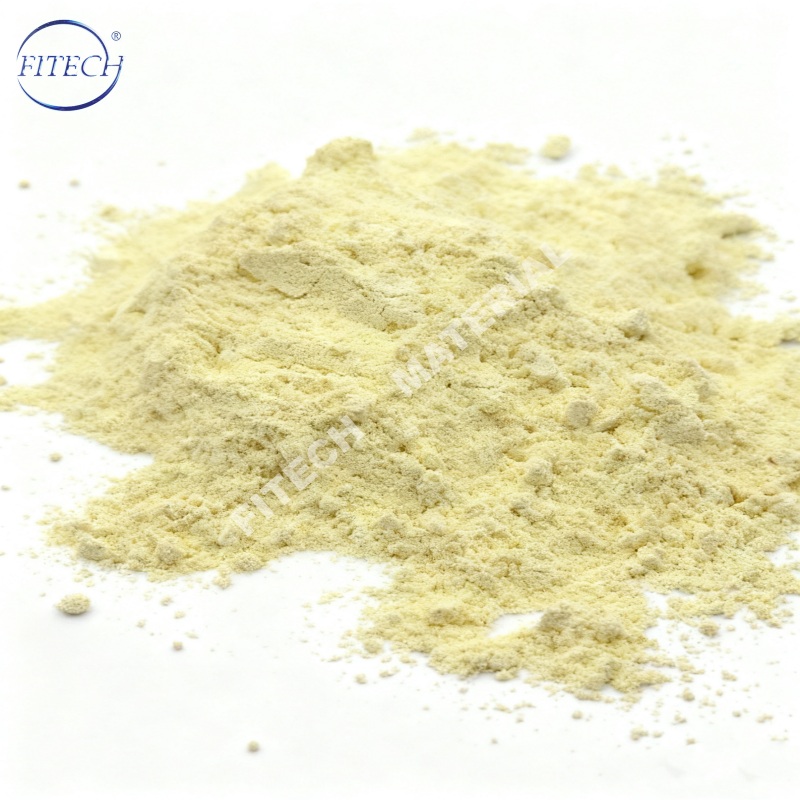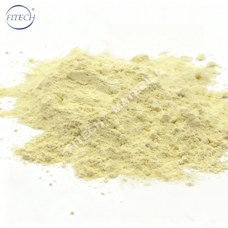 Óxido de cerioPolvo de color amarillo pálido. Insoluble en agua y álcalis, ligeramente soluble en ácidos. Se puede utilizar como material de pulido, catalizador, soporte de catalizadores (aditivo), absorbente de rayos ultravioleta, electrolito para pilas de combustible, absorbente de gases de escape para automóviles, cerámica electrónica, etc.